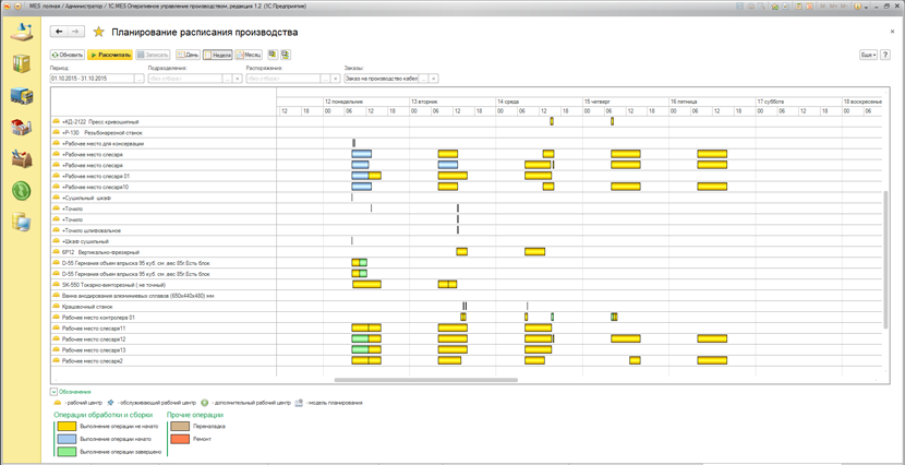 • Графики работы – каждый рабочий центр доступен в соответствии со своим графиком работы;