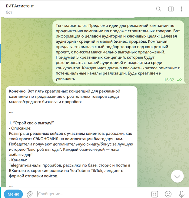 — Сравнивай каналы и инструменты, разрабатывай креативные концепции продвижения с помощью ИИ.