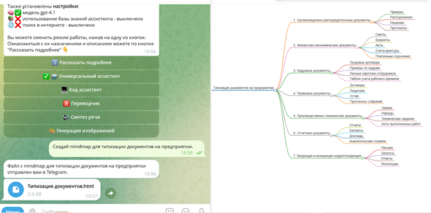 — Генерируйте схемы взаимодействия компонентов, описание процессов, презентации и mindmap.