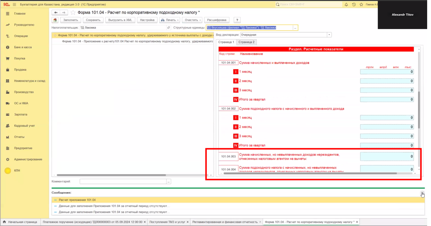 Настройте Отчет по форме 101.04 «Расчет по корпоративному подоходному налогу, удерживаемому у источника выплаты с дохода нерезидента» в виде внешнего расширения для «1С:Бухгалтерия для Казахстана» и формируйте отчет прямо в 1С!