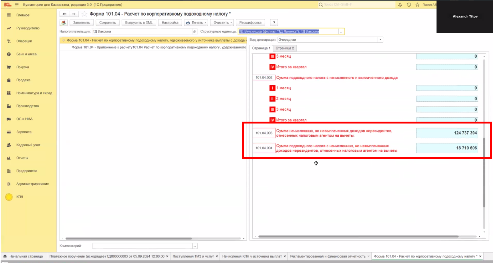 КПН за нерезидента (форма 101.04) в 1С
