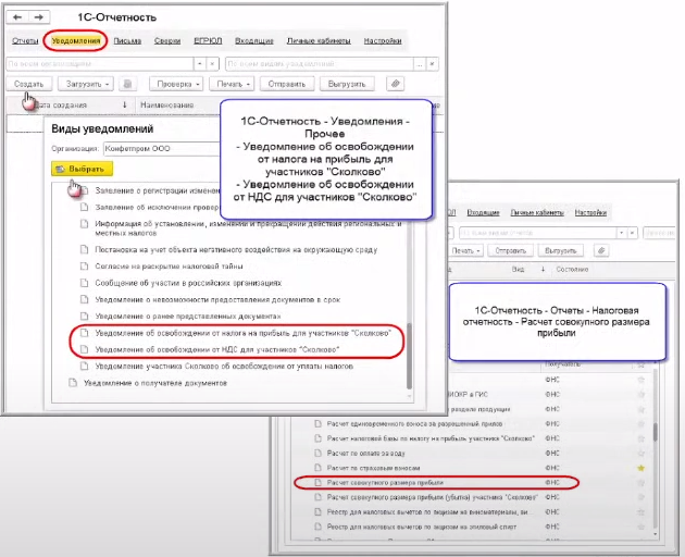 В соответствии с письмом ФНС России от 15 апреля 2020 года реализованы форматы для форм уведомления об использовании права на освобождение от обязанностей налогоплательщика, связанных с исчислением НДС и налога на прибыль, а также расчет совокупного размера прибыли. Это относится к “Сколково” и другим инновационным центрам.