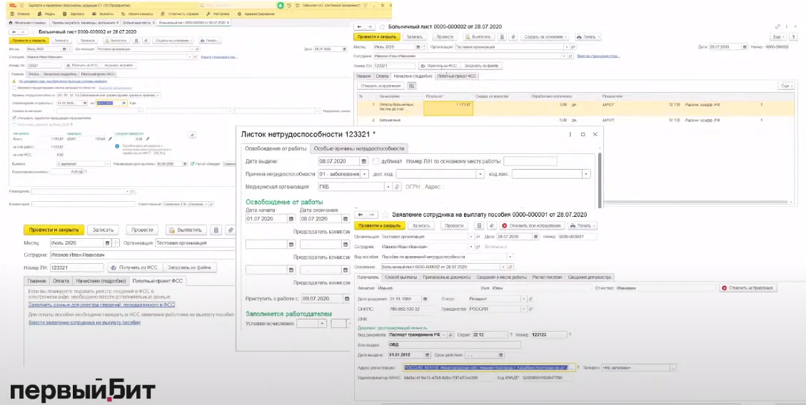 Перед вами скриншоты из документов “Больничный лист” в программе 1С: Зарплата и управление персоналом.