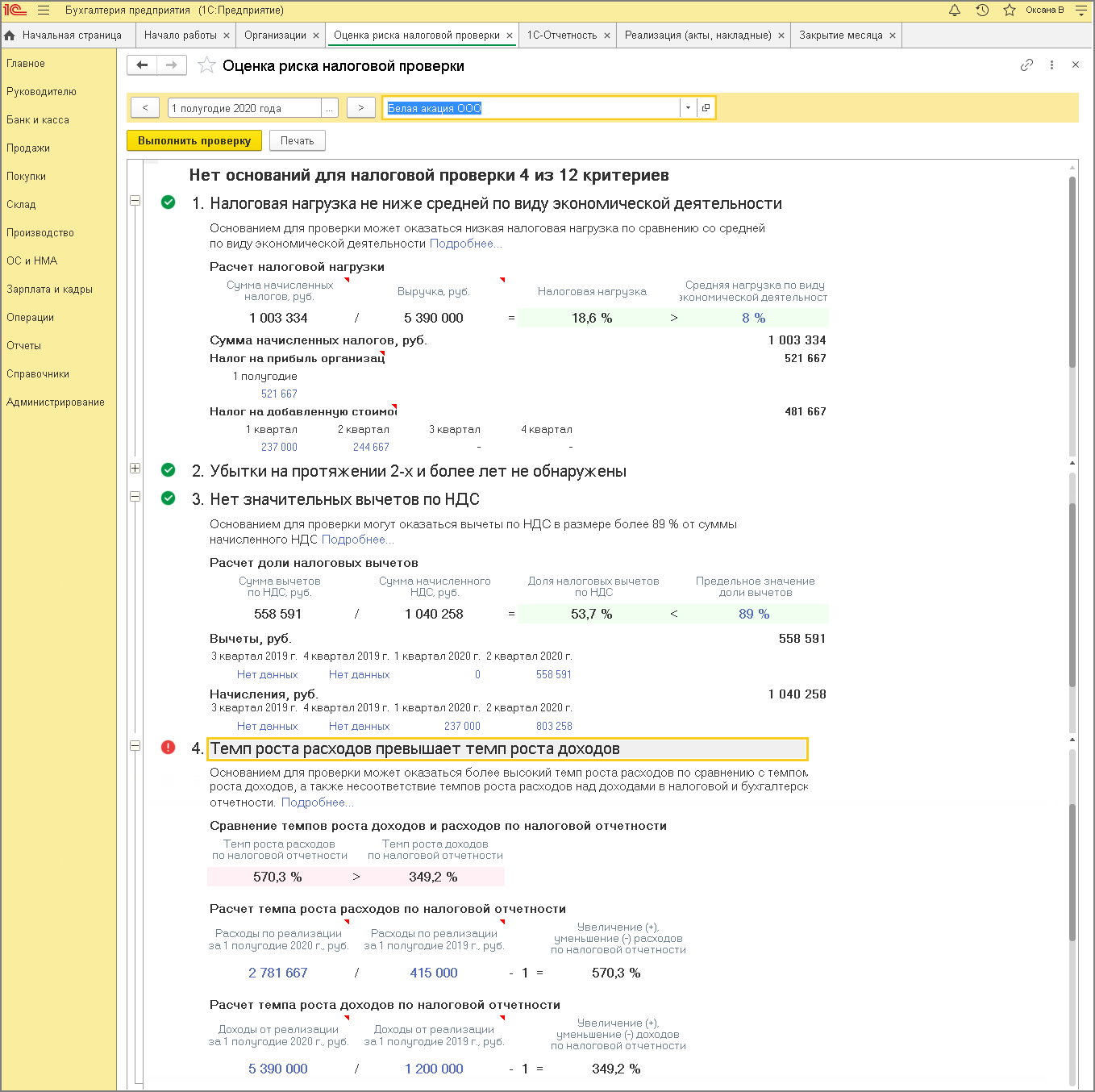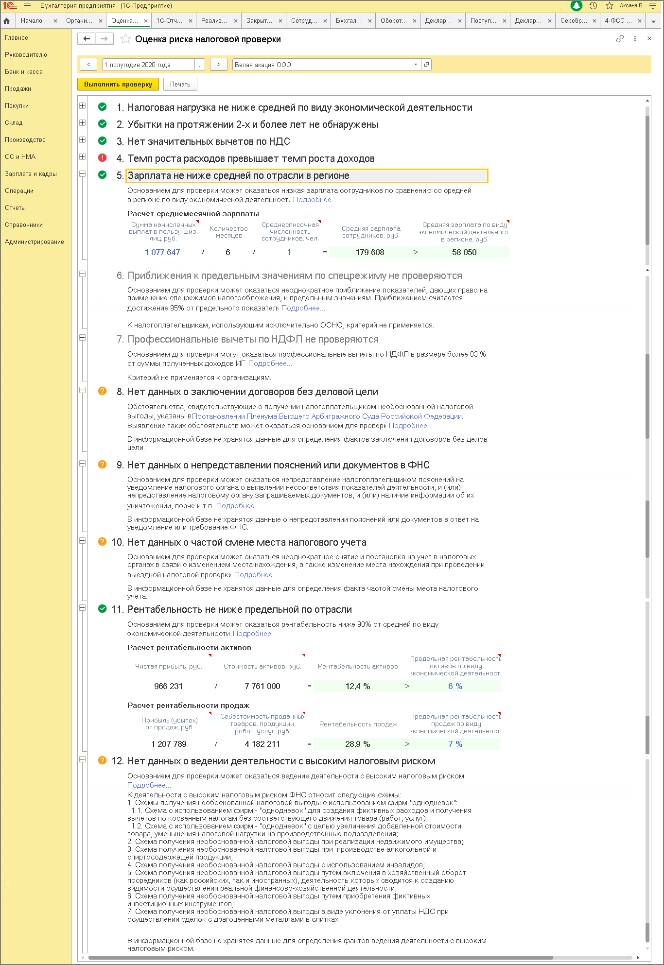 Анализ риска налоговой проверки через 1С: Бухгалтерия
