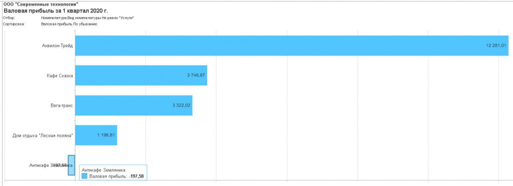 Если использовать отчет по умолчанию, первыми будут выведены товары, которые реализованы с максимальной валовой прибылью.