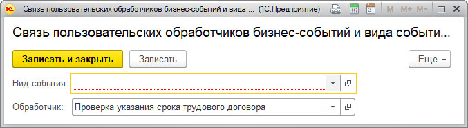 Данная форма служит для отражения связи между видом бизнес-события и обработчиком.