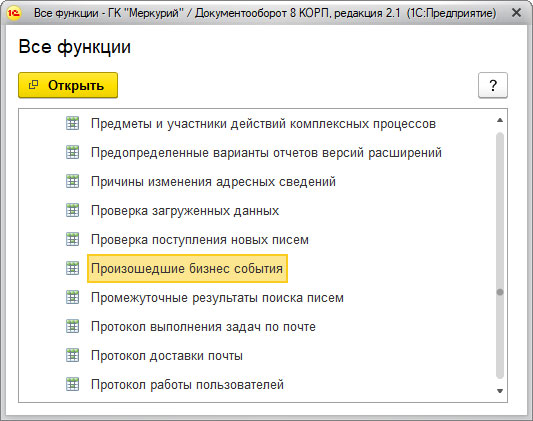По факту произошедшего Бизнес-события, оно фиксируется системой и отражается в реестре «Произошедшие бизнес-события». Эти сведения доступны в меню «Всё функции».