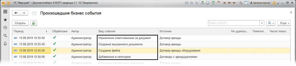Бизнес события в 1С Документооборот