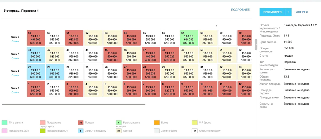 Пример каталога-шахматки для продаж недвижимости в CRM Битрикс: