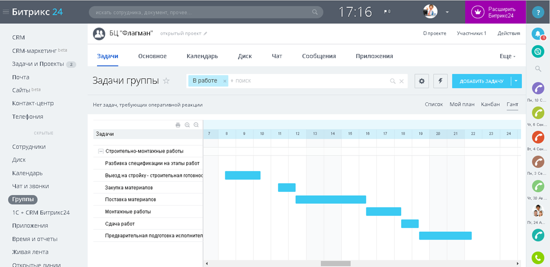 Планирование строительного проекта на диаграмме Ганта в Битрикс24: