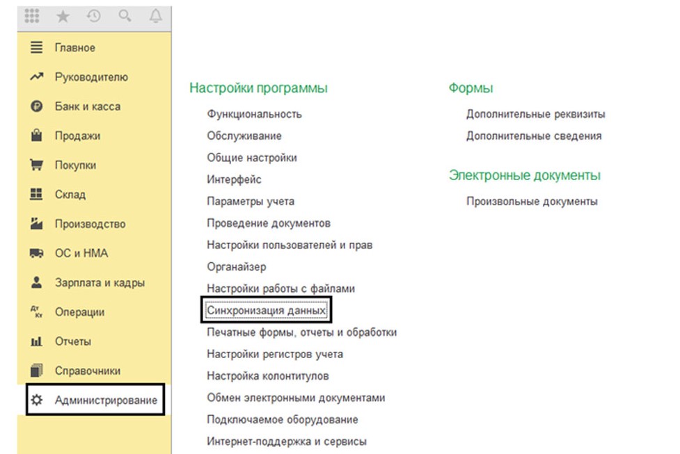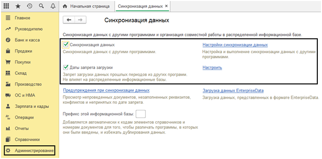Чтобы подобных неполадок не возникало, в программу 1С был установлен механизм «Дата запрета загрузки данных». Его настройкой можно заняться в окне меню «Администрирование-Синхронизация данных».