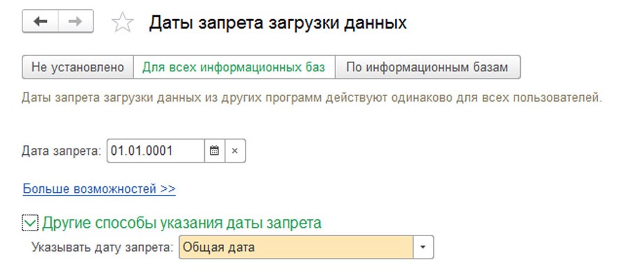 Дата запрета загрузки данных из других программ 1С