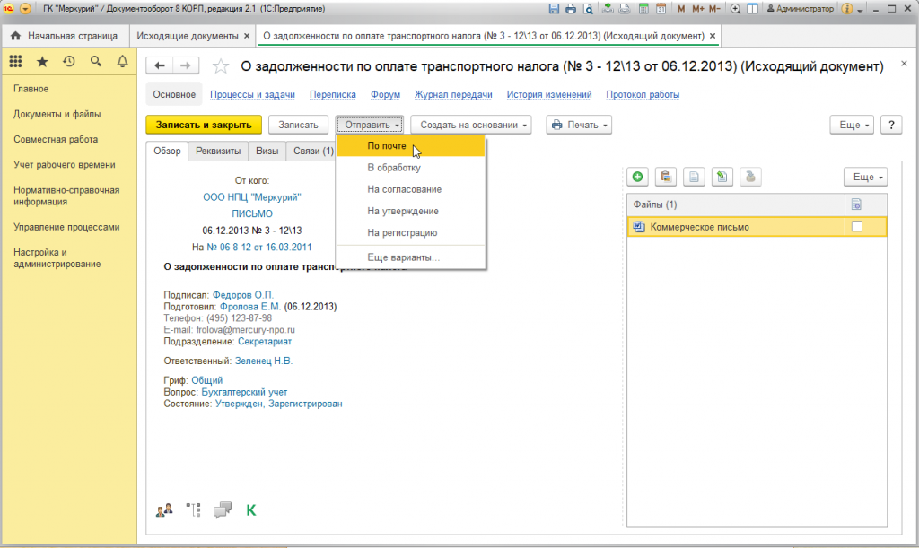 На этом можно и завершить краткий обзор возможностей использования интегрированной электронной почты в программном комплексе 1С:Документооборот.