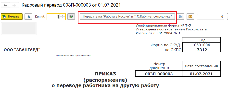- документ выгружается в личный кабинет работодателя в сервисе «Работа в России»;