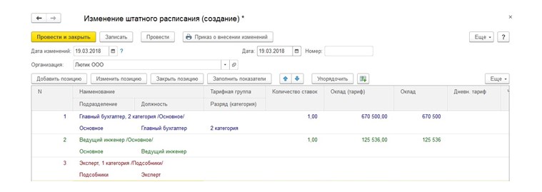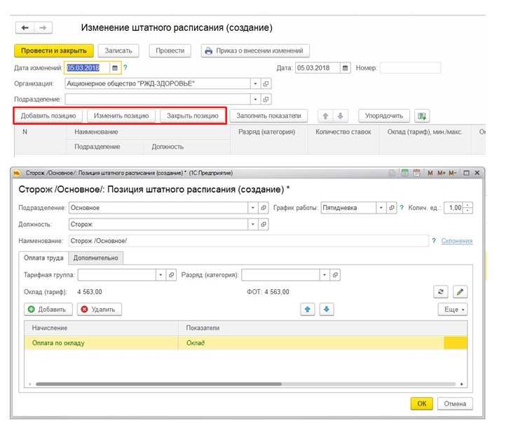 Инструкция по изменению штатного расписания в 1С:Зарплата и управление персоналом КОРП
