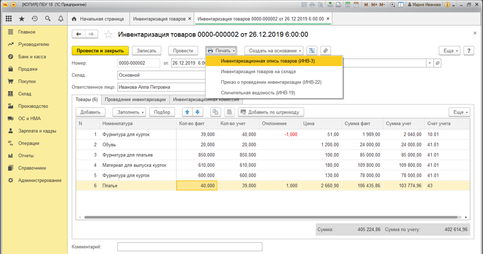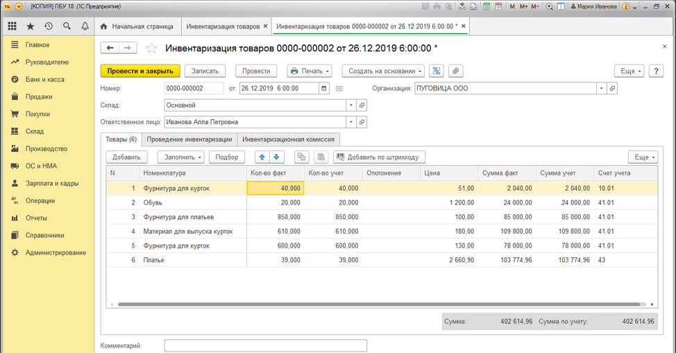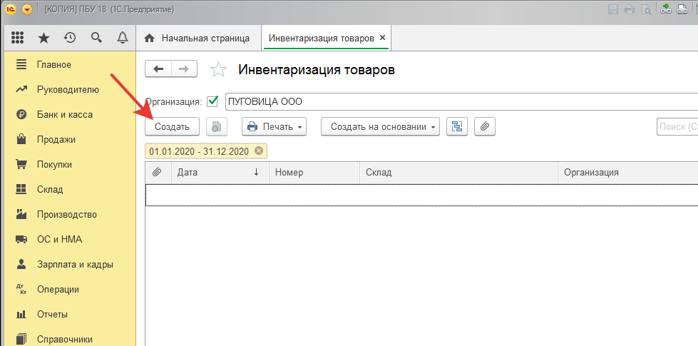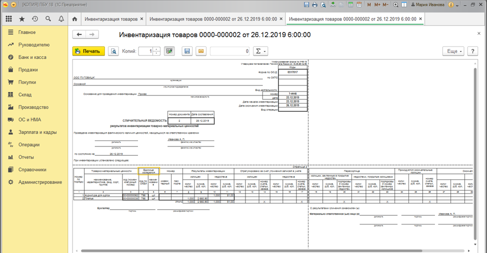 Инвентаризация ТМЦ в 1С: Бухгалтерии
