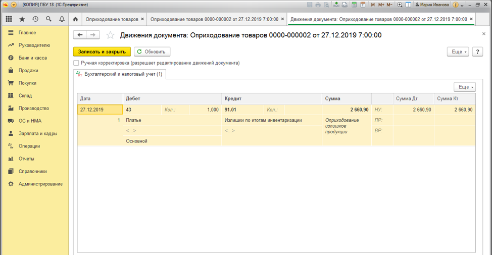 В итоге ваш документ сам сформирует все необходимые проводки: