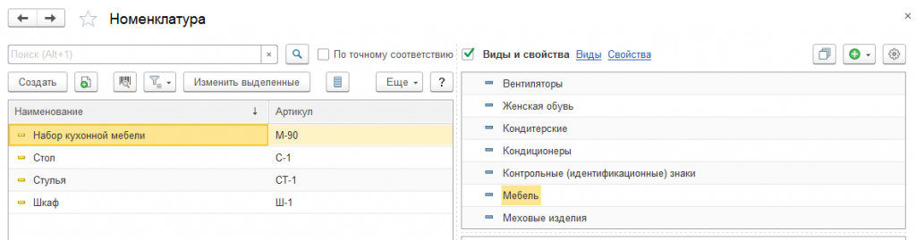 Предоставленных данных будет недостаточно, но уже будет понятно, что произведенные настройки начали работать. Теперь можно непосредственно в настройках номенклатуры указать дополнительную информацию о товарах (их описание, фотографии и прочее). Для этого необходимо открыть справочник «Номенклатура» из пункта меню «Продажи».