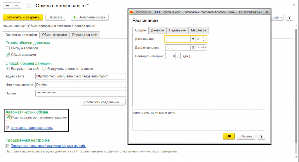 Выполнение настройки выгрузки из 1С 8.3 на сайт