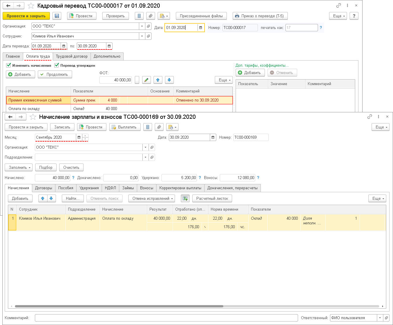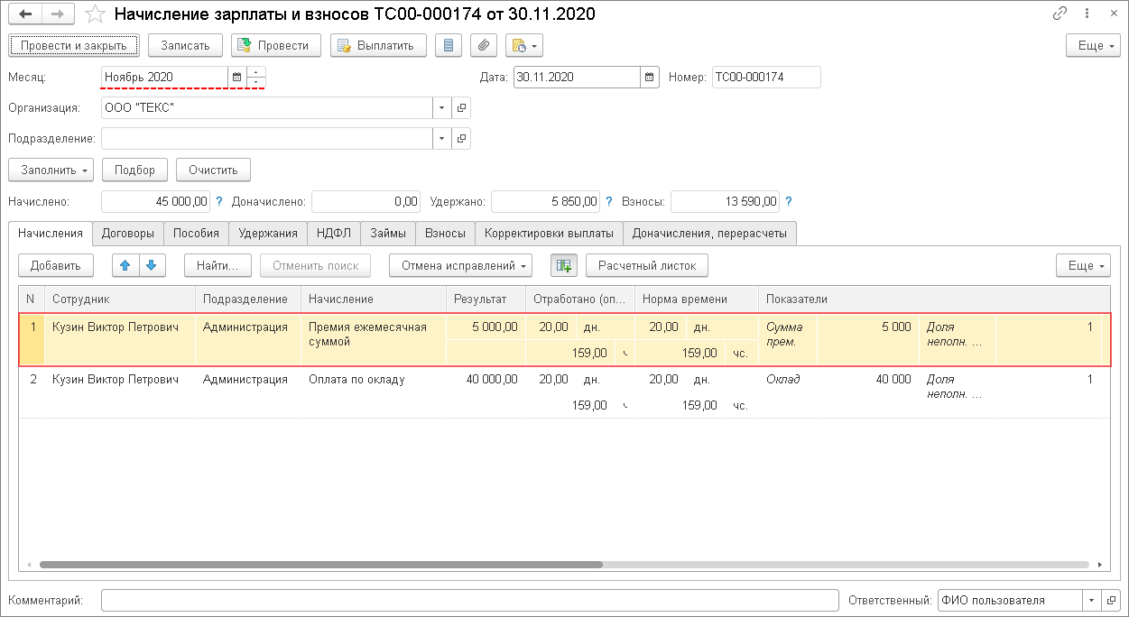• при лишении сотрудника премии на определенный срок после даты в графе «по» отмененное начисление продолжит начисляться автоматически.