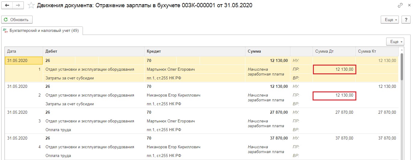 Найдите строку субсидированной выплаты и в графе «Сумма» укажите 12 130 рублей. Соответственно, во второй строке, отражающей сумму выплаты тому же работнику, её следует уменьшить на всё те же 12 130 рублей.