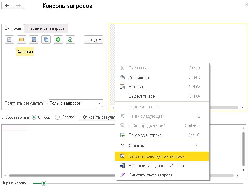 Как пользоваться конструктором запросов в 1С 8.3