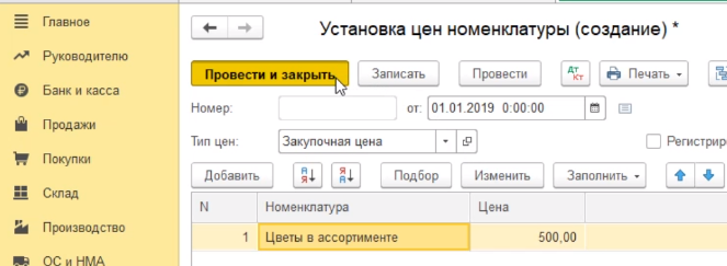 Устанавливаем цену - пятьсот рублей. Нажимаем кнопку провести и закрыть.