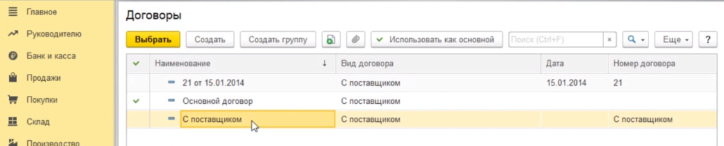 Выбираем контрагента, в нашем случае ООО "Конфетпром".
