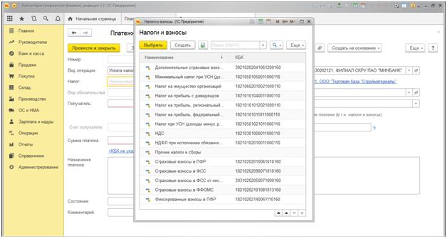В строке «Налог» пользователь может выбрать тип платежа в бюджет, в доступном перечне нет отдельного значения госпошлины, поэтому добавить его потребуется самостоятельно, использовав конструктор КБК.