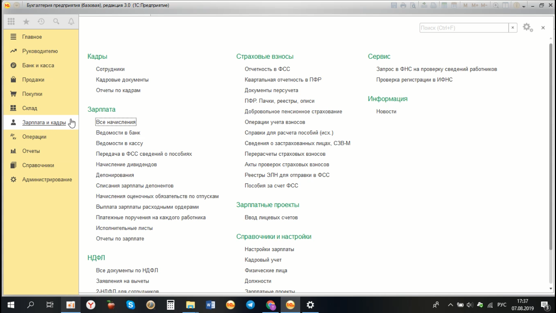 Для этого переходим в раздел «Зарплата и кадры», «Зарплата», «Все начисления».