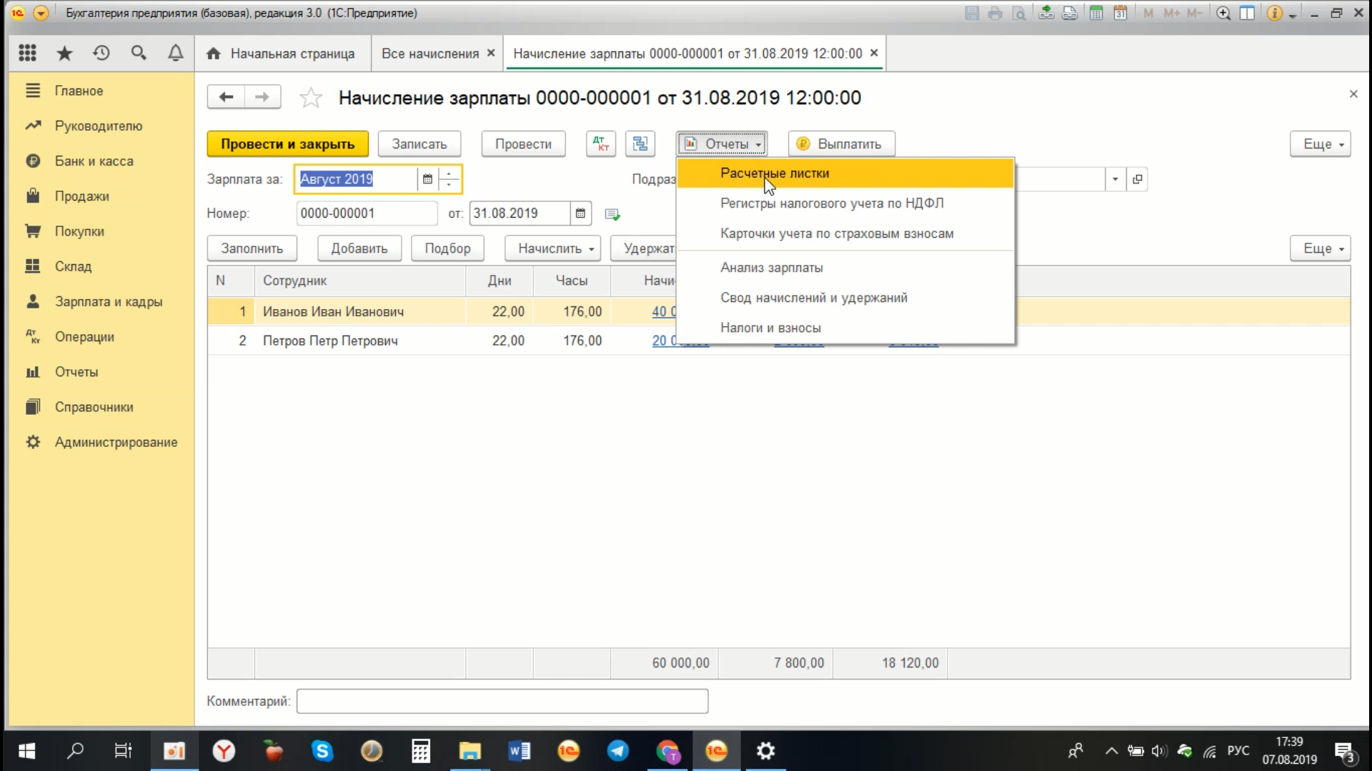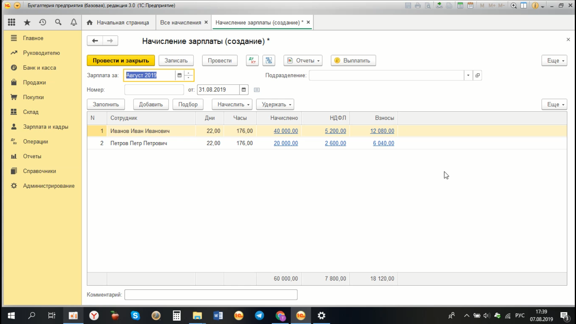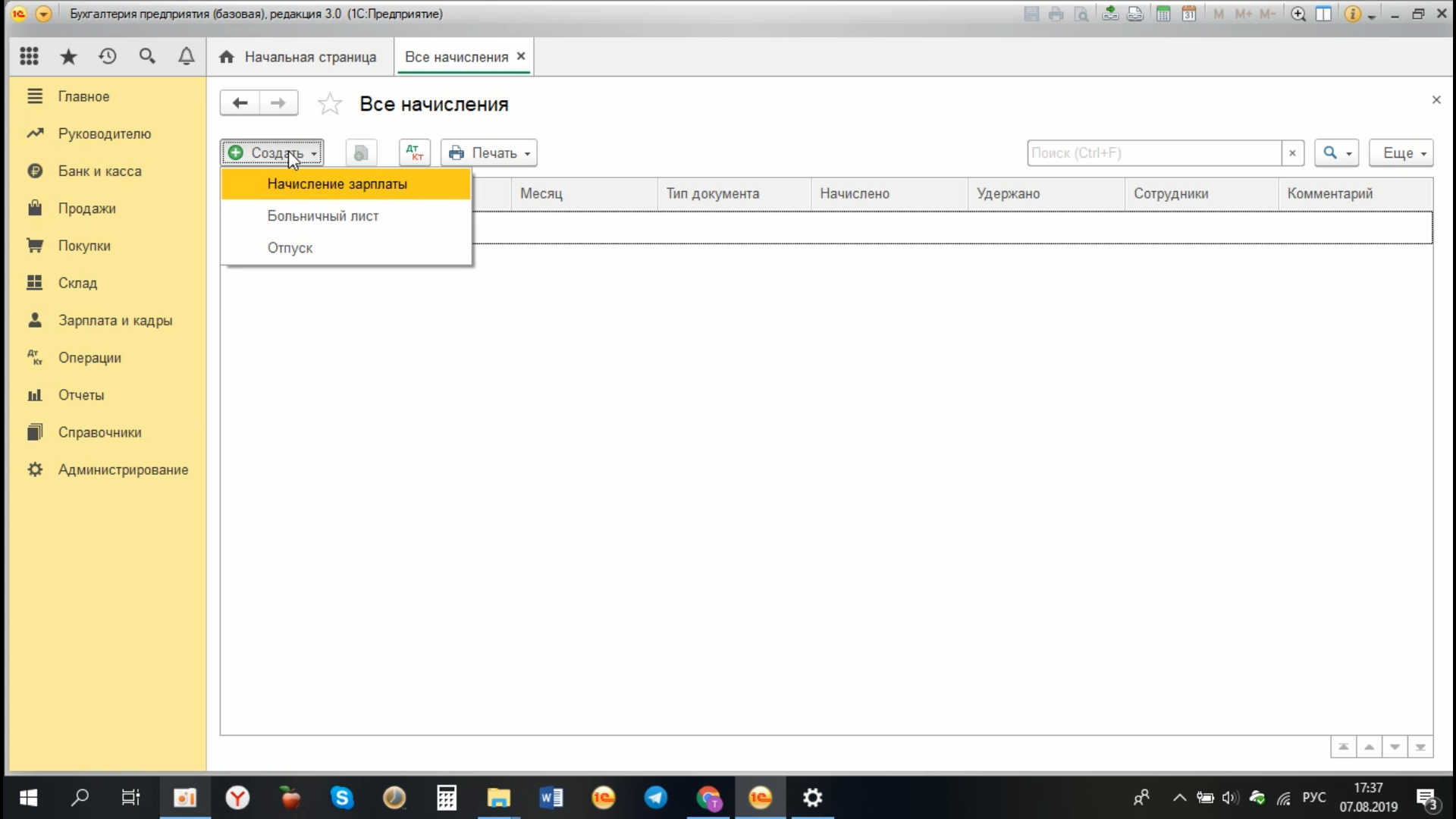 Как в 1С Бухгалтерия 8.3 начислить зарплату