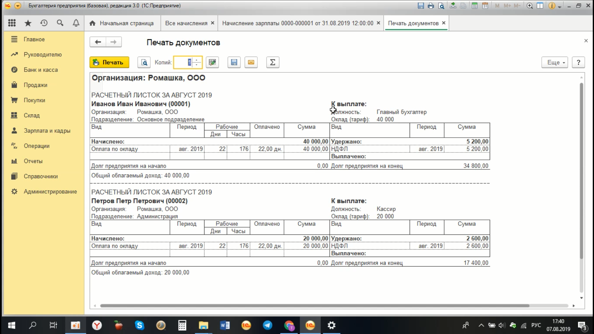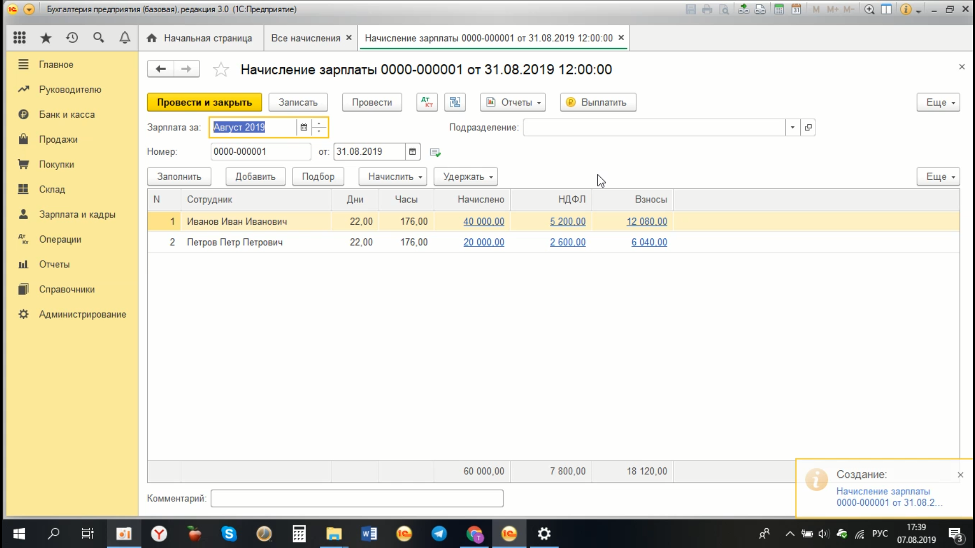 Таким образом, у нас происходит начисление зарплаты.