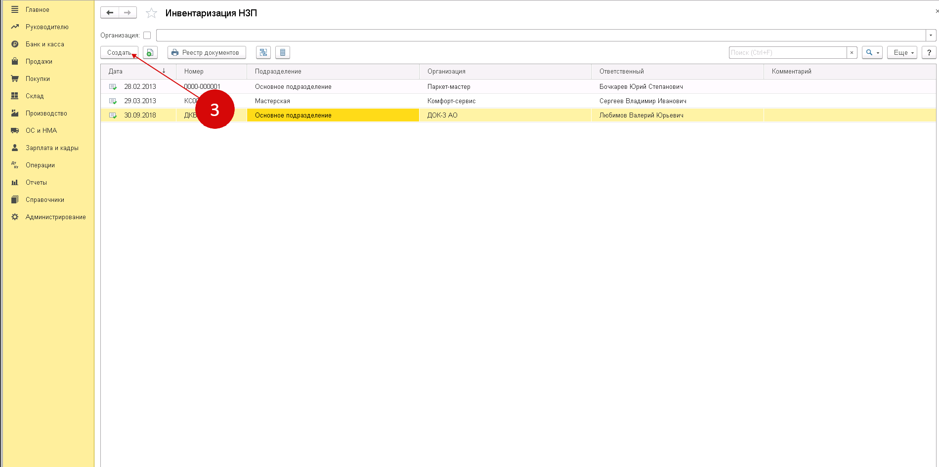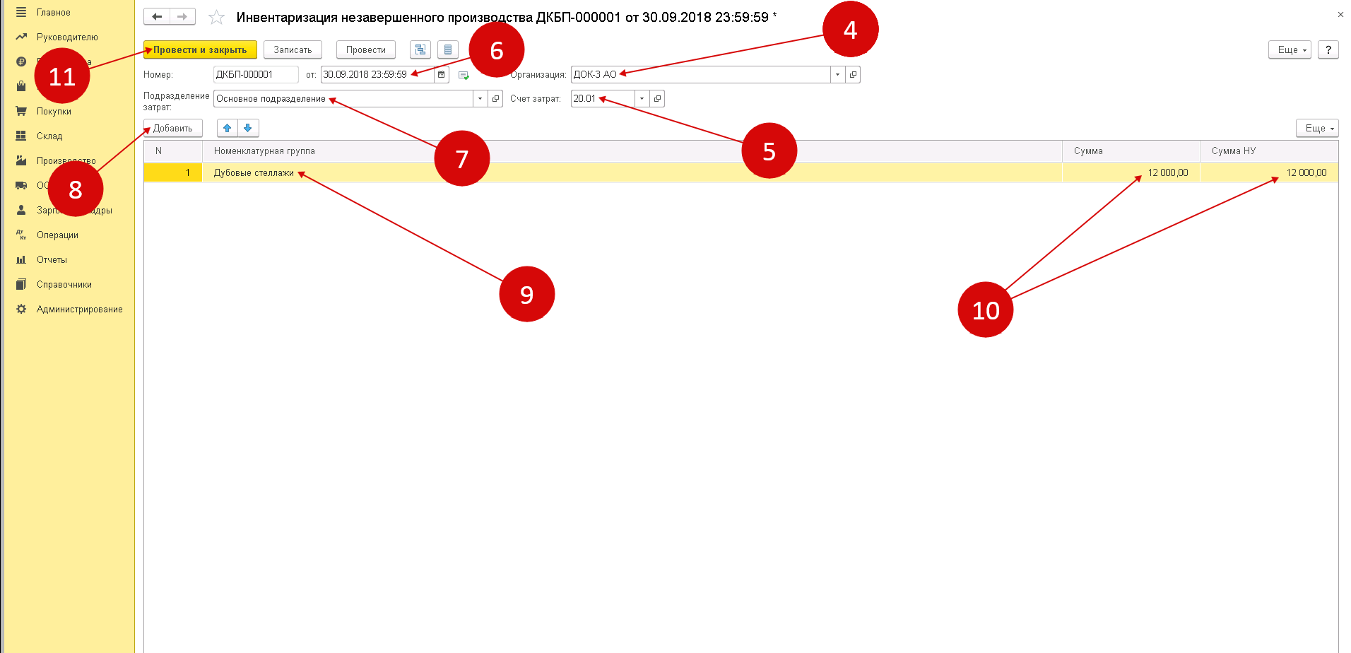 4 Шаг. Учет остатка незаверенного производства в документе «Инвентаризация НЗП»