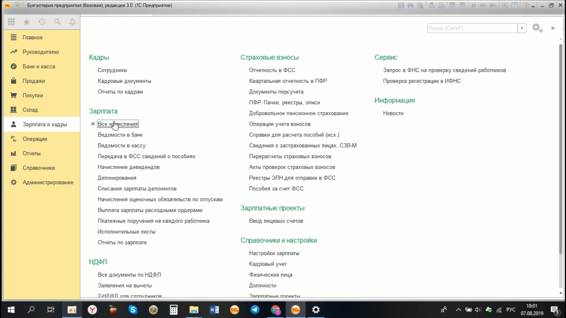 В программе 1С Бухгалтерия 8.3 учет невыходов на работу, кроме больничных листов, не автоматизирован, поэтому если у нас были какие-либо невыходы сотрудников, мы это отражаем в документах ручными корректировками. Для этого мы должны с вами в документе «Начисление заработной платы», «Зарплаты и кадры», «Все начисления»,