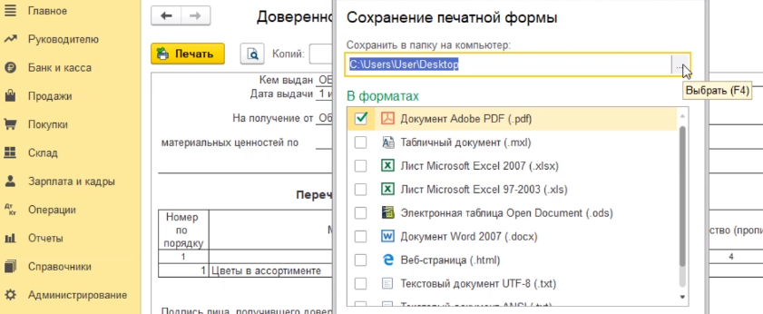 Программа сохранила на рабочий стол в электронном виде документ-доверенность. Мы ее всегда можем оттуда при необходимости распечатать.