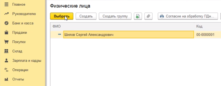 Выбираем то лицо (Шилов Сергей Александрович), на которое эта доверенность будет выписываться. Нажимаем кнопку выбрать.
