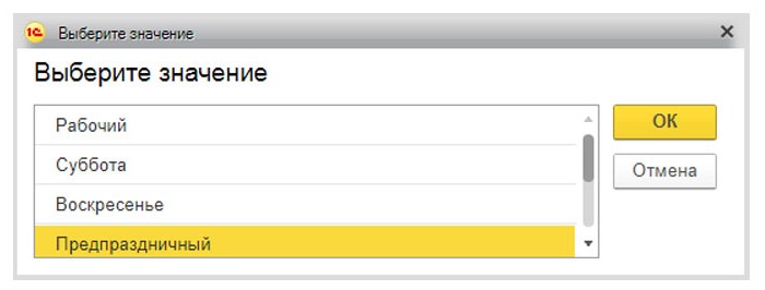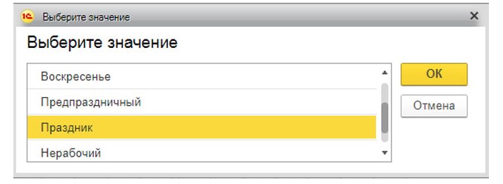 Категория дня в календаре изменяется, он меняет цвет на праздничный. После этого важно изменить день перед выходным на «Предпраздничный», чтобы система не ошиблась при подсчете общего количества рабочих часов в месяце, поскольку один час вычитается из общего времени дня на за день до праздника.