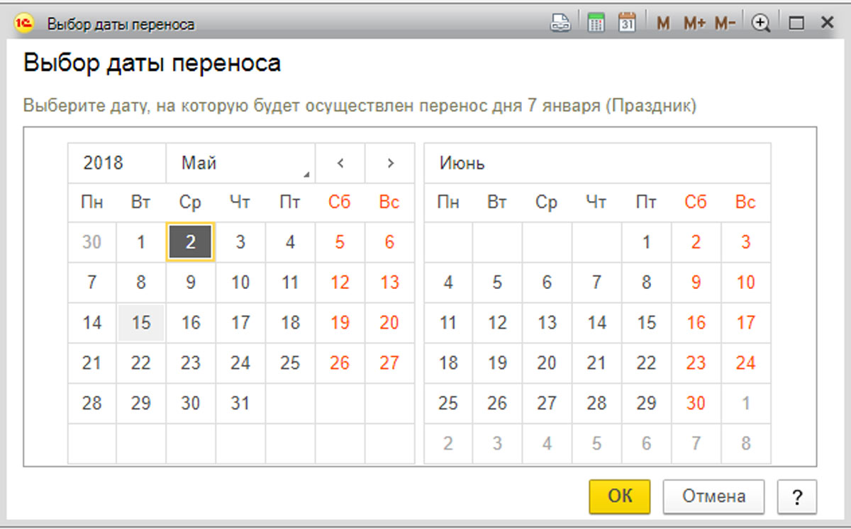 В открывшемся окне «Выбор даты переноса» необходимо выбрать желаемую дату и нажать ОК.