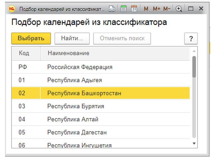 В программе изначально есть календарь с наименованием «Российская Федерация». Его необходимо настраивать один раз каждый календарный год.