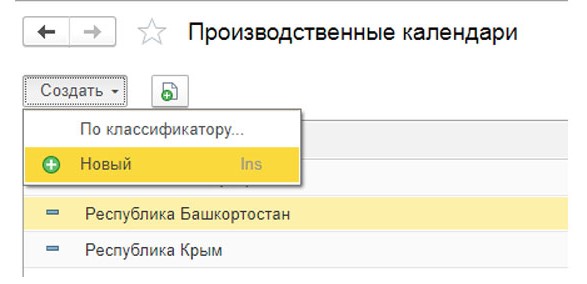Также существует функция создания собственного календаря. Нужно найти меню «Производственные календари», далее кнопку «Создать», а после «Новый».