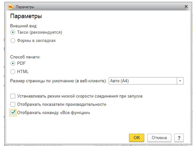 В этом окне нужно поставить галку около «Отображения «Всех функций».