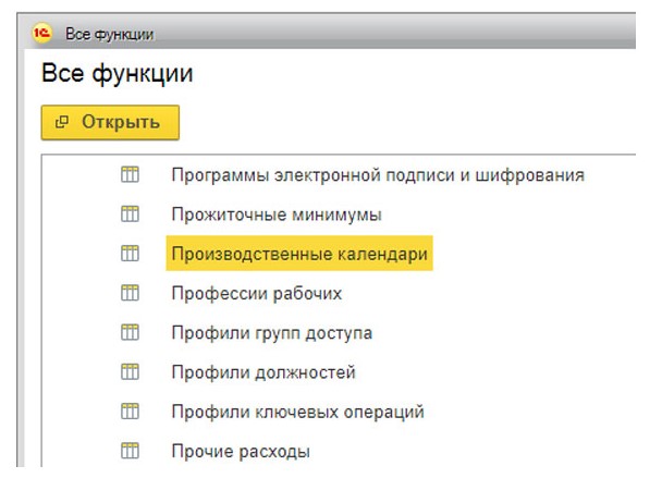Расположение производственного календаря в 1С:ЗУП
