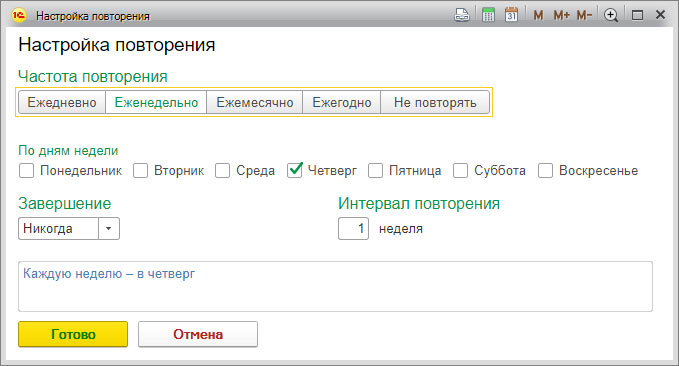 В настройке мероприятия можно создать напоминание, указать сколько оно будет длиться и установить повторение, указав как часто оно будет происходить.