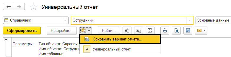 Благодаря хранилищу настроек, можно не только сохранить, но и просмотреть и настроить параметры отчетов, которые вы формируете. Это позволяет в автоматическом режиме заполнить форму настройки и оптимизировать работу.