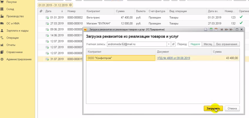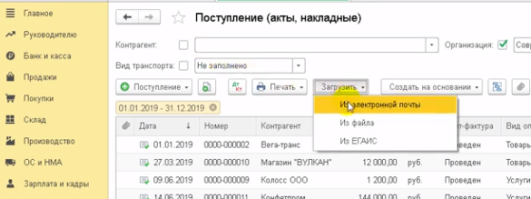 Допустим организация получает от другого поставщика товары и комплект документов по электронной почте.