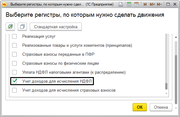 Из появившегося списка выбираем пункт «Учет доходов для исчисления НДФЛ».