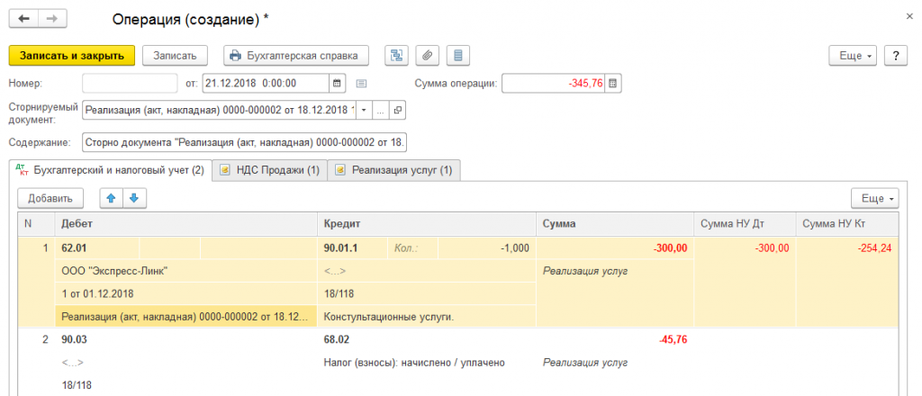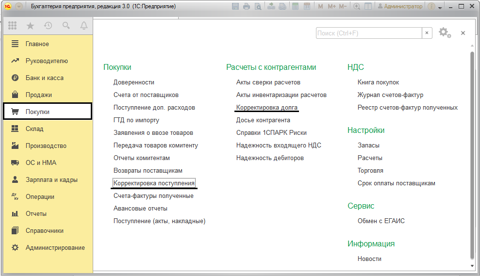 Данная операция рассматривается как пример. Некоторые программы поступают к пользователю уже с корректировочными документами. В программе 1С Бухгалтерия предусмотрены следующие корректировки: