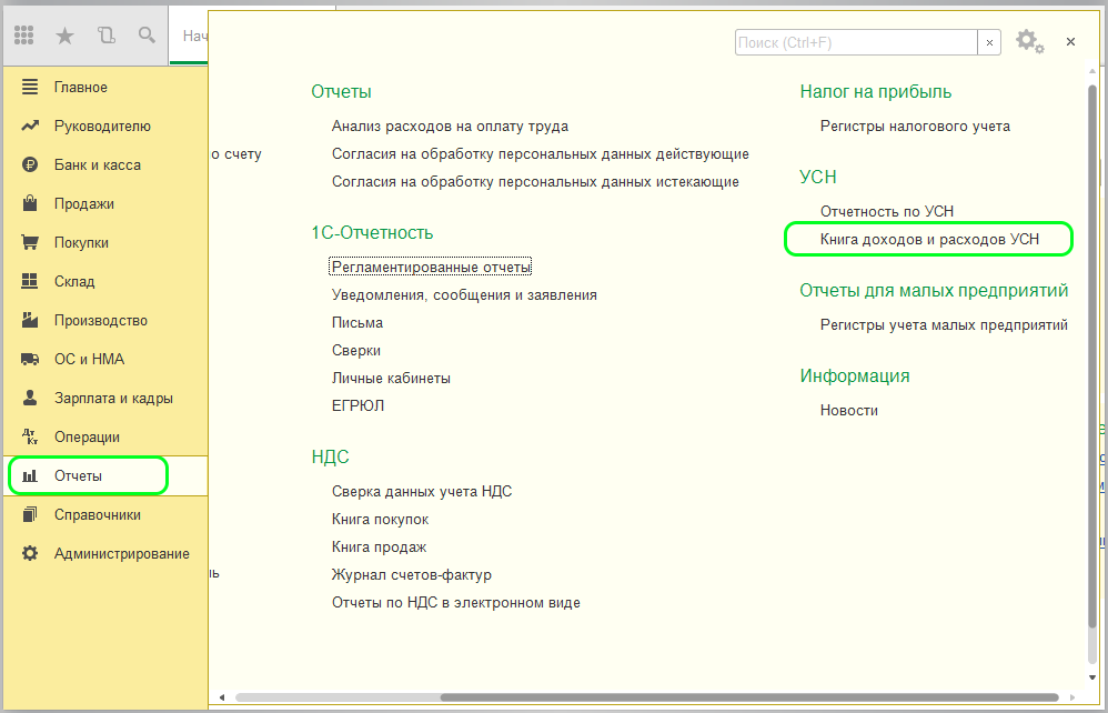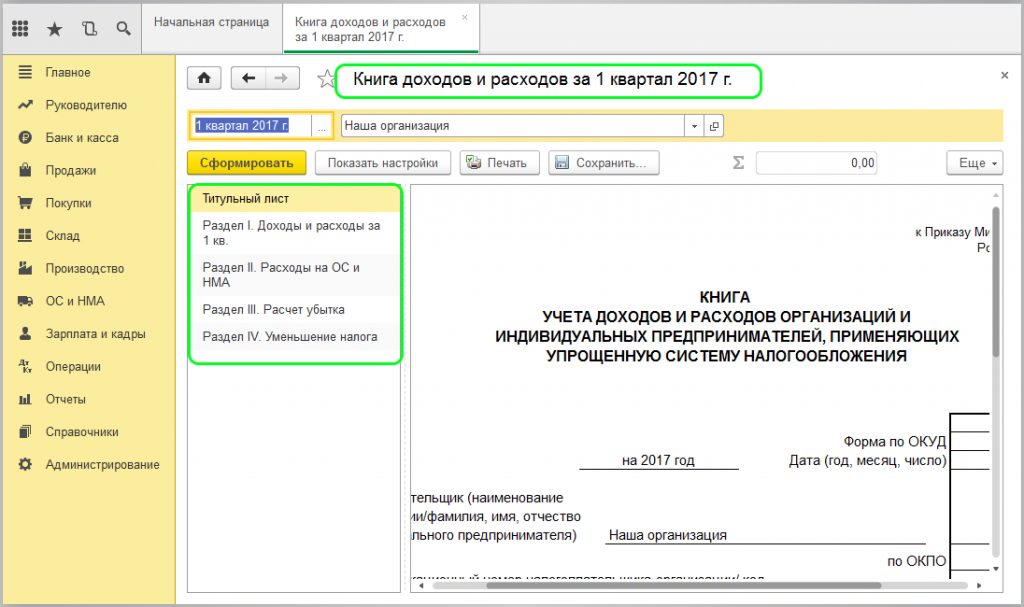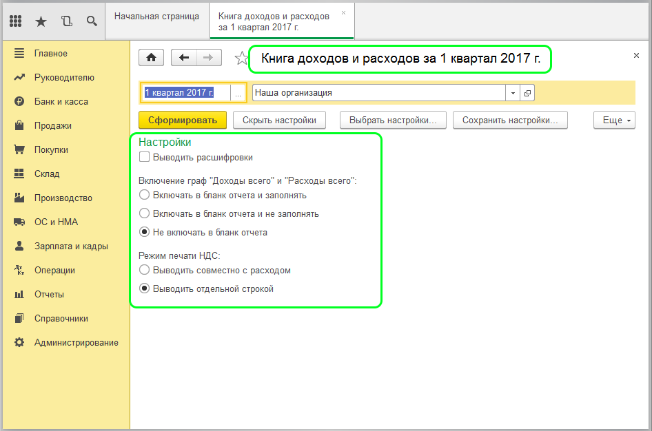 Книга учета доходов и расходов в 1С:Бухгалтерии