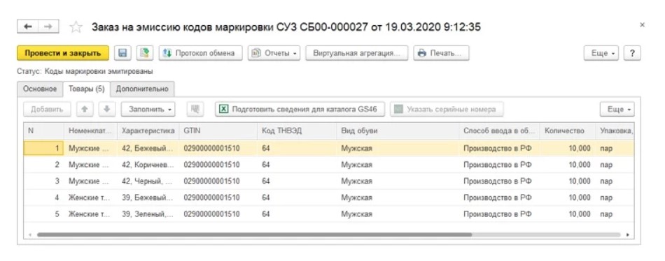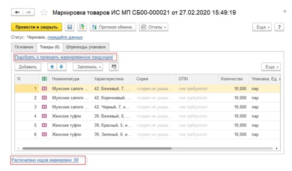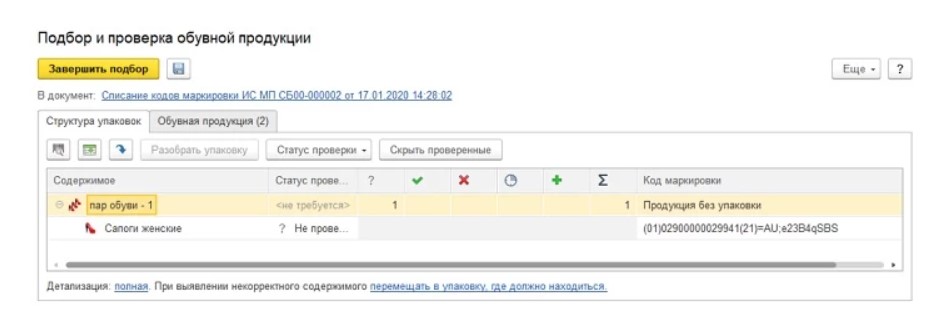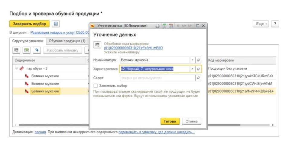 Особенности приобретения обуви с маркировкой оптовыми продавцами в «1С Управление торговлей »