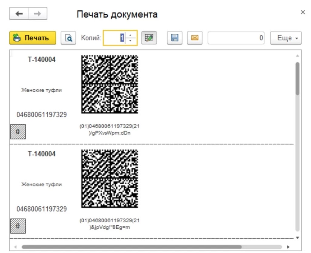 1. Можно выбрать массовую печать штрихкодов с последующим нанесением на упаковки. Предварительно убираются лишние штрихкоды.